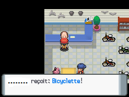 Tout comme Mars, Jupiter est une combattante redoutable. Son Nosférapti reste toutefois plutôt facile à abattre avec des attaques de type Electrik, Roche, Glace ou Psy mais faites attention à Giga-Sangsue si vous utilisez un Pokémon de type Eau ou Roche. Moufflair, lui, n'a qu'une seule faiblesse, les attaques de type Sol. Tout comme le Roserade de Flo, il tient également une Baie Sitrus pour récupérer une partie de ses PV. Moufflair peut également baisser votre précision avec Brouillard et vous faire très mal avec la combinaison Grincement, qui fait fortement baisser votre défense, et Tranche-Nuit qui possède aussi un fort taux de coups critiques sans oublier l'empoisonnement avec Gaz Toxik. Donc soyez sur vos gardes et frappez fort avec des attaques de type Sol; si vous n'en avez pas, tournez-vous vers des attaques neutres sur Moufflair mais évitez les attaques de type Psy qui sont inefficaces sur lui ! Une fois vaincue, Jupiter vous apprend que son chef s'intéresse aux mythes des anciens Pokémon et que la Team Galaxie s'est intéressée aux Eoliennes pour y récupérer de l'énergie, et à Vestigion pour la statue et vous parle d'un Pokémon mythique avant de vous conseiller de vous mêler de vos affaires. Jupiter prend ensuite la fuite et Rad vous remercie de votre aide et vous invite à passer à sa boutique. ![]() Pour vous remercier de votre intervention, Rad vous offre le dernier modèle de bicyclette qui possède deux vitesses, une qui est maniable mais un peu lente mais vous pouvez changer la vitesse en appuyant sur B pour passer à une vitesse supérieure mais avec une maniabilité plus difficile. Maintenant que vous possédez la Bicyclette, vous êtes obligé de quitter Vestigion par le Sud. C'est parti pour Unionpolis ! |